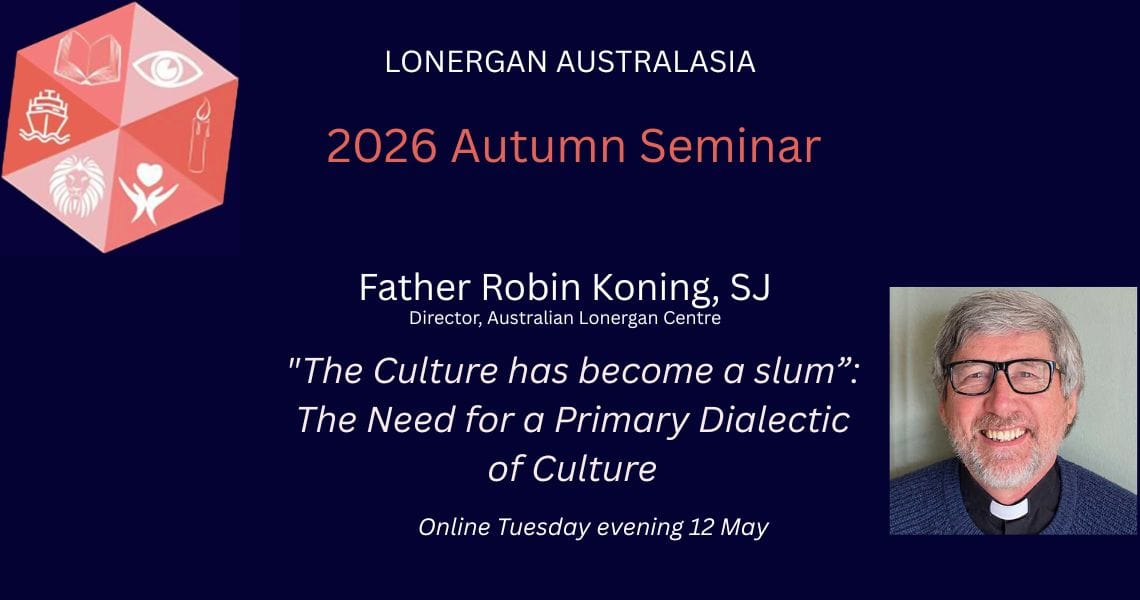 In the Lonergan Australasia 2026 Autumn Seminar in May, Father Robin Koning SJ, Director of the Australian Lonergan Centre will present on ‘The Culture has become a slum’: The Need for a Primary Dialectic of Culture.